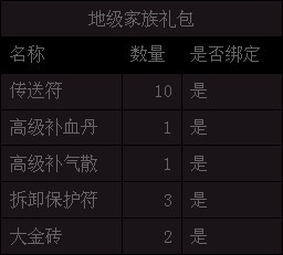 家族排行榜二至五位即每位家族成员得到“地级 家族礼包”*1;