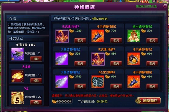 合服后:神秘商店只开启5天,合服5天后神秘商店将关闭