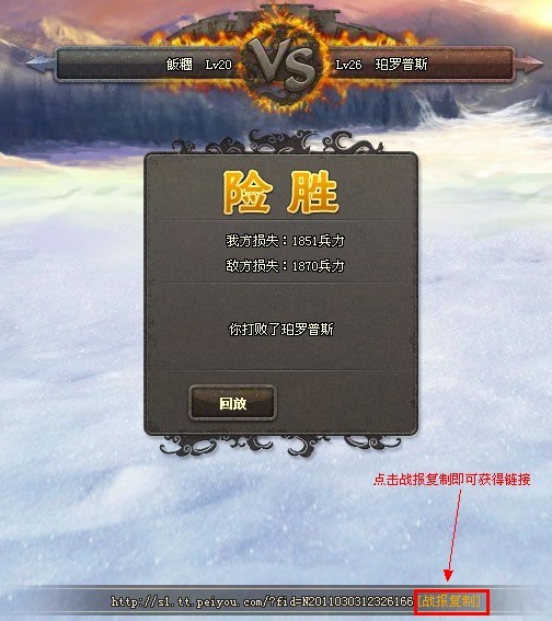 当战斗结束后,战斗画面正下方会出现战报链接,只要复制即可(如图)