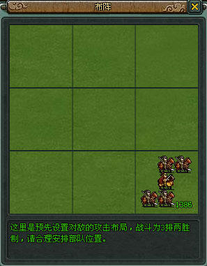 点击“摆放部队”按钮,玩家可在9个摆放位,排放自己的编组部队: