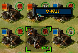 资源争夺战战场界面,在界面中可以点击临近的资源点,如果是本方资源点,系统提示为“移动到此”,如果是临近的敌方资源点,系统提示为“攻击此处”:
