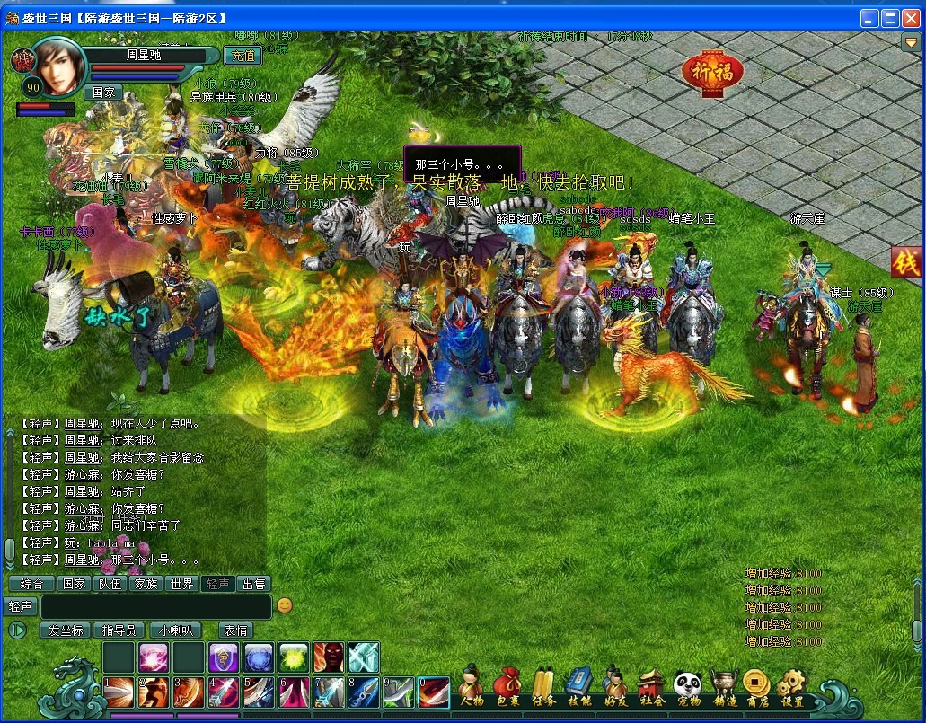 周星驰:我是蜀国的,现在是在陪游《盛世三国》2区的率性而为家族。我们家族族长是上班族,经常不给力,上线时间不稳定。家族的成员基本都是2区的。以前的BOSS对手都变成了好友,因为1区的RMB玩家太多,而且比较敬业。我们家族的人都比较可爱,属于憨态可掬的那种。如果去打BOSS,本国蛇女会去20个人,中立BOSS就去10个人,10个人被杀一遍之后,只有5个复活继续抢BOSS,另外5个会大喊没钱拉!就躺在那里看着。如果经验是我们的就站起来拿钱,如果经验不是就没事人般继续忙自己的了。呵呵,总体来说我们家族的成员都是好样的。平时不管打不打的到BOSS,聊天侃大山是没的说,很多聊神。让我们游戏起来还是很充实的。