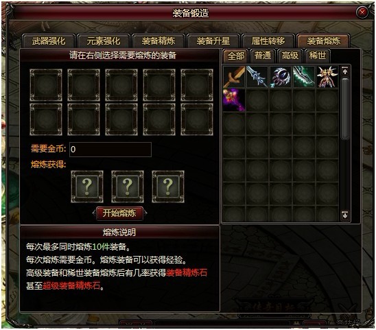 熔炼装备还可以获得超级精炼石和经验。
