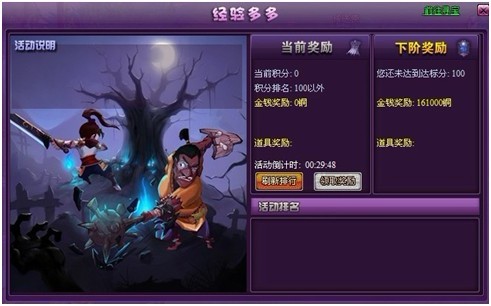 这是考较玩家获取经验能力的活动,按从系统获得经验多少来对应积分,达到达标积分就可以领取奖励,之上的排位即可领取奖励。