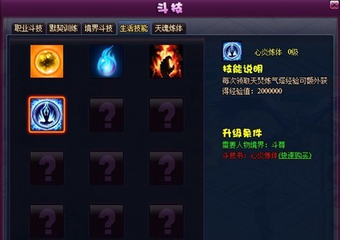 心炎炼体:可以提升天焚练气塔经验获得加成。