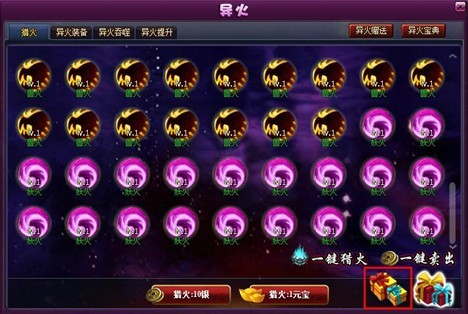 B.异火属性增加后,因装备异火的规则改变,无法同时装备的8种异火将被全部卸下并存放在猎火奖励左侧的小礼箱中(见下图)