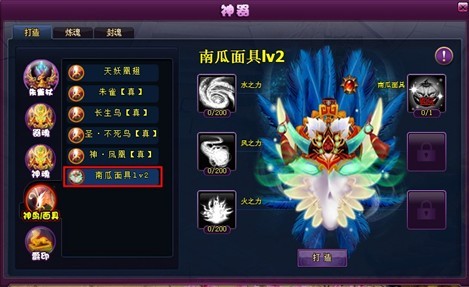 3. 神器的神鸟打造界面新增了南瓜面具的打造功能。