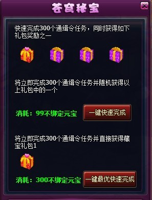 5. 苍穹秘宝活动面板新增快速完成功能