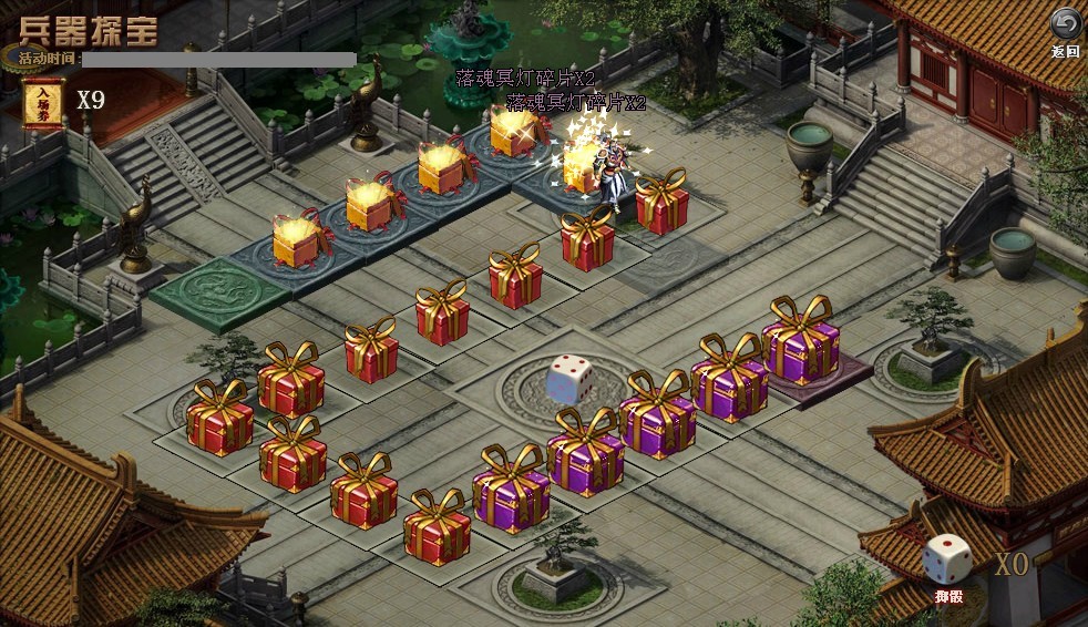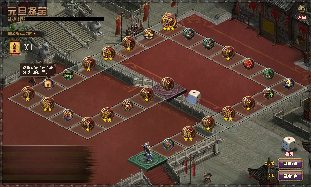 3、色子用完可用金币购买或结束探宝,凭入场券重新入场获得色子。