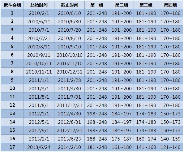 4) 按新积分更新排序列表,重新匹配。总共循环16次,即每个玩家对战16轮后,武斗会结束。