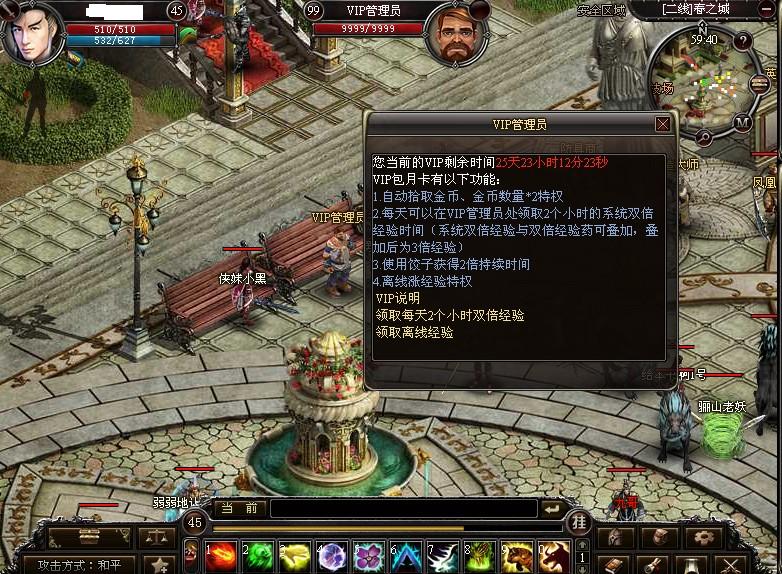 2、VIP会员每天可以在VIP管理员处领取2个小时的系统双倍时间(系统双倍经验与双倍经验药可叠加,叠加后为三倍经验)