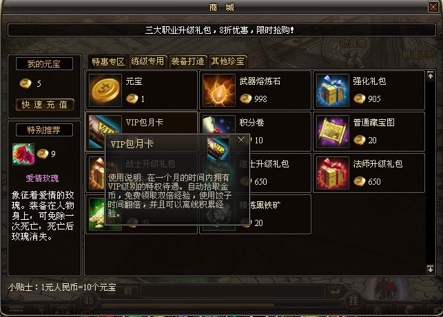 购买价格:包月VIP卡480元宝