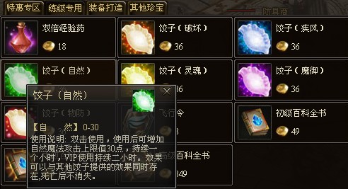 领取VIP双倍经验时间2小时+使用2个双倍经验药+各类饺子