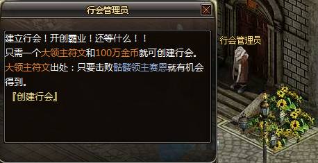 通过击杀骷髅王赛恩可以获得大领主符文,到春之城找到行会管理员NPC,与之对话。