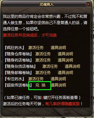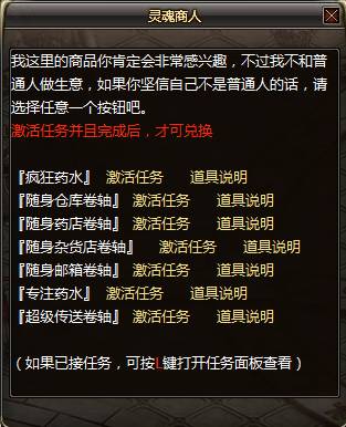 点击激活任务后,玩家将自动激活对应地图的日常任务系统,完成指定的任务后玩家将获得传奇奖章并且再次与灵魂商人对话