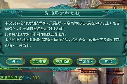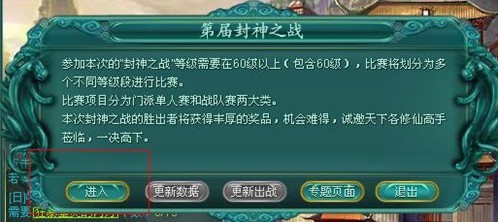 主界面左上角会出现一个按钮,点击可进入到“封神之战”的界面