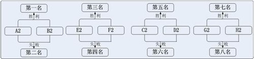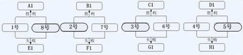 强赛第一轮对阵图:初赛中进入8强的玩家或者队伍,按预赛和初赛的积分排出1-8名