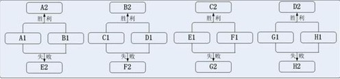 3、每轮比赛胜利的进入到胜者组,失败的进入到败者组,然后系统进行分组安排下轮比赛。