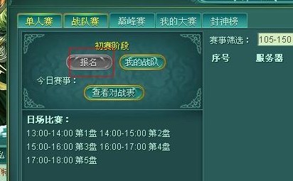 点战队赛可以进行报名,报名时间内,按钮变亮,不在报名时间段内,按钮为灰色。报名时请注意自己队伍所对应的等级。系统会按照战队里等级最高的人的等级进行分组。报名结束后可以通过查看对战表来查看自己的对手是谁。