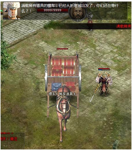 国镖镖车遵循一定的路线前进,任意玩家可以攻击镖车,