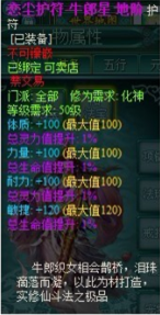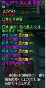 人阶鹊桥护符:分为天、地、人三种,其特色属性+120(满),另一属性+100(满),另附2个紫色1%随机属性