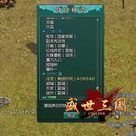 在陪游盛世三国游戏中,有很多的地方。例如常用位置隐龙村、边境、仓库、关隘、许昌。日常任务副本传送官、征伐将军、墓穴入口、等。其他位置冷宫、邺城、长安、徐州。这些地方如果要自己找的话是很浪费时间的。但是陪游盛世三国右上角有个传字,就可以轻松快速的将自己快速送到自己想要去的地方。不过在去你想去的地方之前,你需要交一定的银两只有这样才能快速到达你要去的目的地。